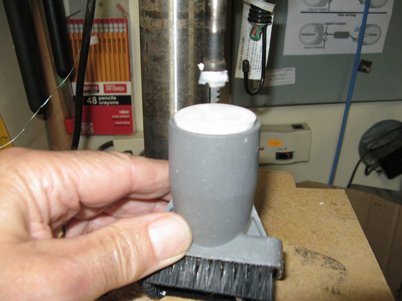 drilling out the centre for the holding screw with a forstner bit held in a vacuum brush