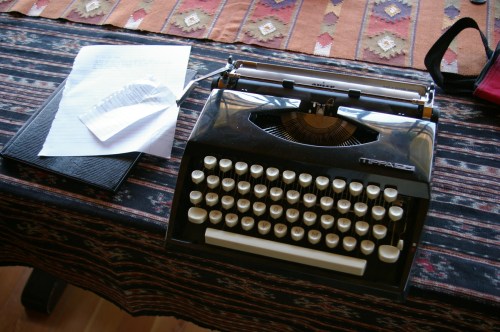 My first typewriter was a Hermes 9. I used it when I was starting out in business in 1983. Then came computers and the typewriter went into the closet, then bye bye. Fast forward to 2003. I bought a little portable for $10 at a thrift shop. I typed a few things on it (including some thoughts about typewriters and where they were going) and got a back ache – so I gave it back. It was pale blue and had a red label on the top right. It may have been a Hermes too, but I can’t recall.