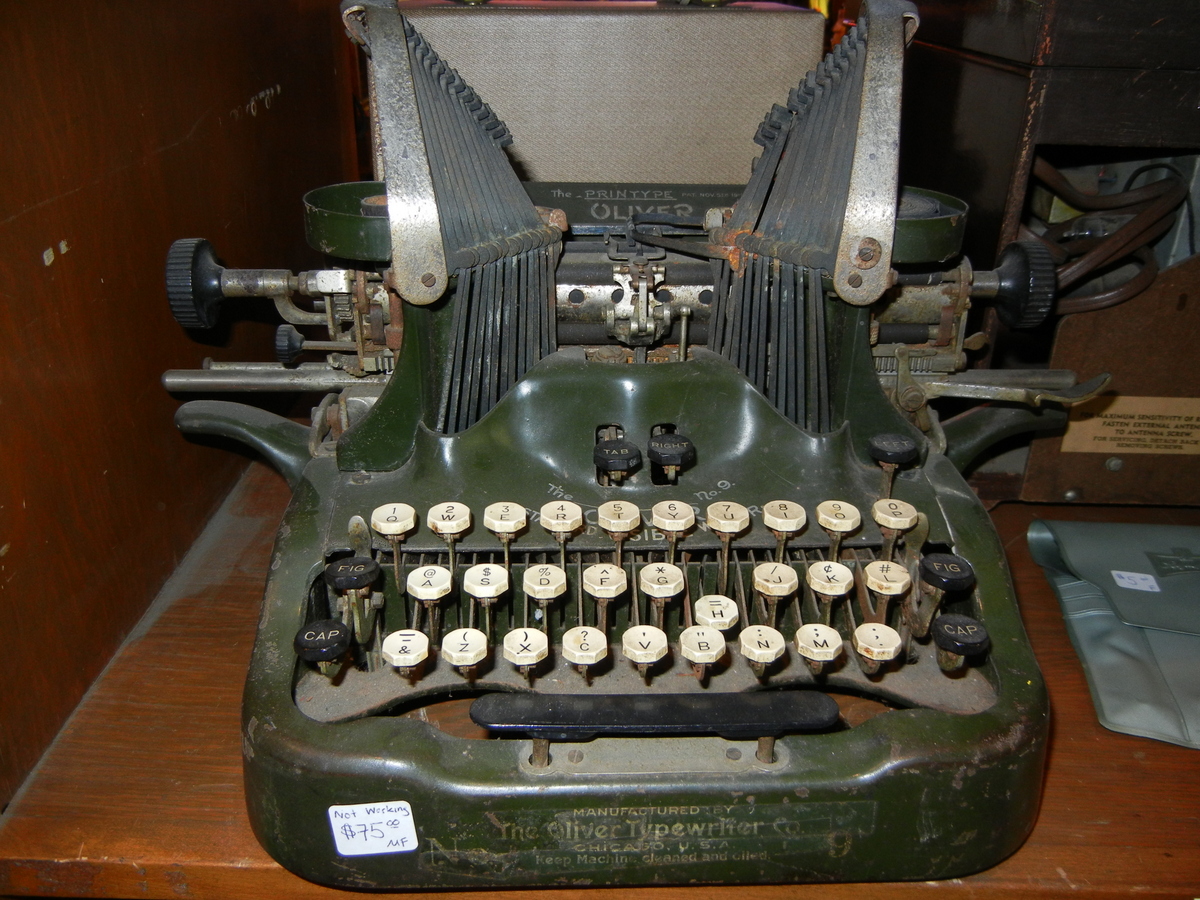 Touring around in the Westy last week I saw a goodly number of typewriters for sale in thrift shops and antique malls. I bought the portable Royal Quiet Deluxe, and would have bought the Oliver and the Corona folder had their prices not been so high!