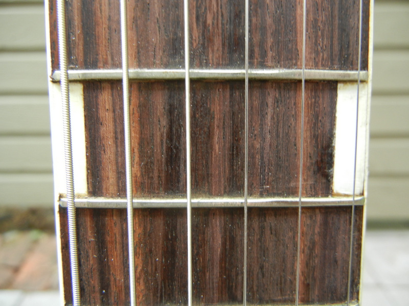 2-DSCN2861Last weekend I found this old Japanese electric guitar in the back corner of a thrift shop. It had no strings, one tuner gear and post was missing, and it looked rough – but I took a chance and bought it. I figured the cost would provide me the enjoyment/education of either fixing it or discovering it was irreparable. At the worst it was worth it just for the possibility of the spare parts!