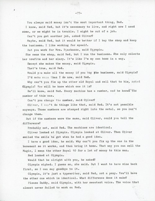 While setting out various events in the book I realized that my choice of a 1939 Royal KMM typewriter didn’t fit the timeline, so I have revised the machine to a 1914 Royal 10 instead. This has worked out better than expected for numerous reasons. I prefer the look of the older machine, which in my opinion would be more attractive to kids of all ages. Here is a picture I downloaded of a 1914 Royal 10 (thanks to sevenels). Now if I can be so lucky as to find one in a thrift shop for $25….