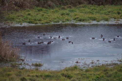 The south side of the lake has now flooded again as it does once the rain comes, and the slough was filled with ducks and geese. Way off in the distance near some tall firs I thought I saw an eagle fly past.