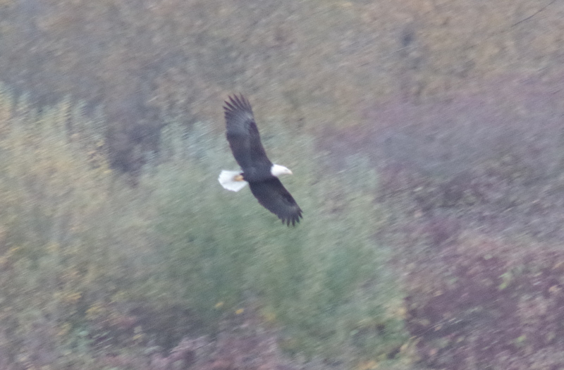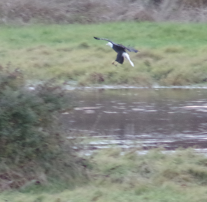 Once I rounded the last side of the circle I spied a pair of Bald Eagles wheeling and spinning over a small flooded meadow. They dropped down as if to grab a fish not once but several times and scattered a flock of ducks and birds.