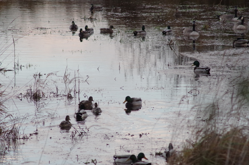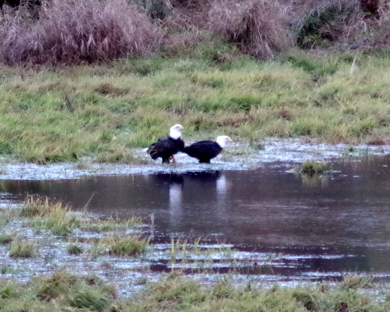 The south side of the lake has now flooded again as it does once the rain comes, and the slough was filled with ducks and geese. Way off in the distance near some tall firs I thought I saw an eagle fly past.