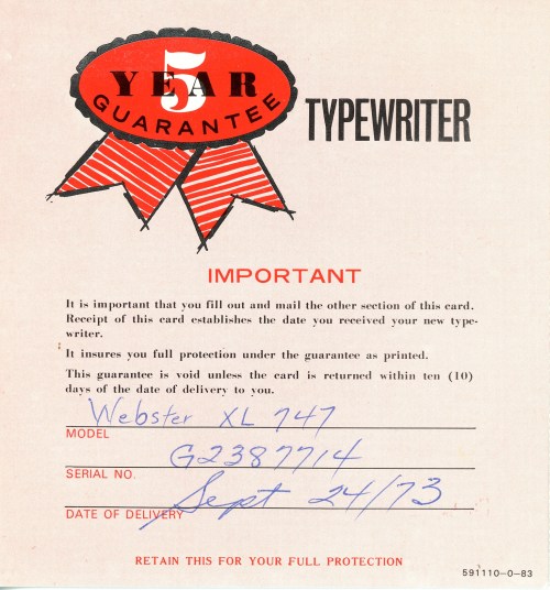 I should mention that just like many Beatles albums, this LP came with bonus goodies, in this case a free Webster XL747 typewriter!