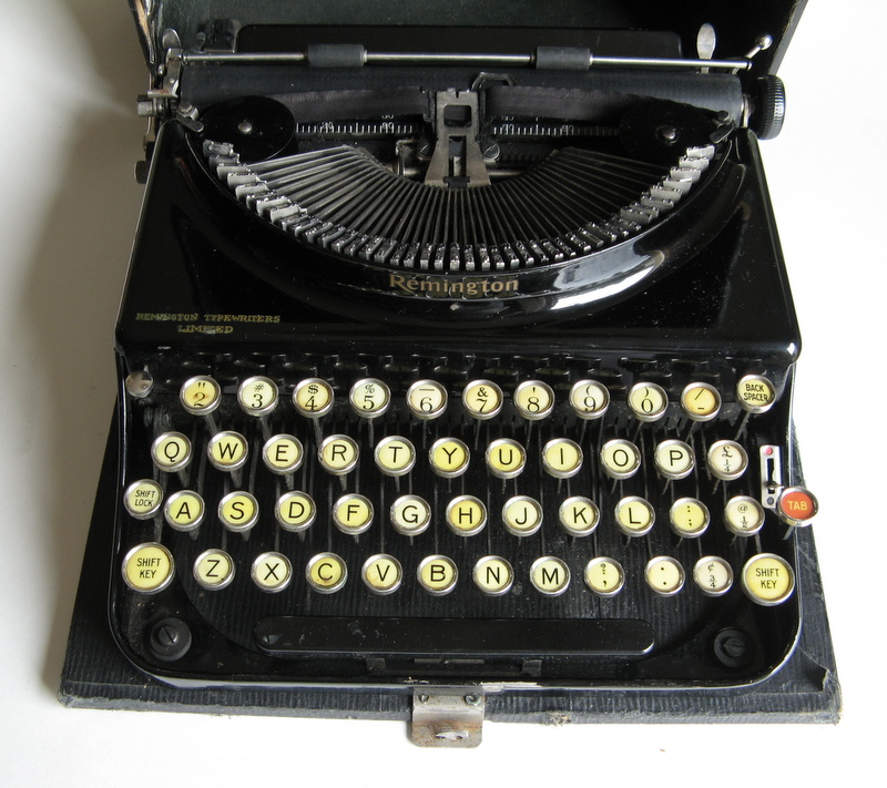 I recently acquired a 1929 Remington portable 3. I now have a 1, 2 & 3 of these, and it’s interesting to see the slight differences as the design was changed. The model 3 I found was missing a small stud from the carriage advance lever. I knocked out the embedded bit and hammered in a small nail in its place. That fixed the problem, and the typewriter is now working well – amazing for a 90 year old machine! The model 3 has a slightly wider platen than the #2, which was slightly wider than #1. The #1 had a simple advance mechanism that was much improved with the addition of the lever on model 2, which carried over to model 3. Model 2 had the original lifting typebars, which are gone in model 3, in favour of a low panel on the top front that conceal the slightly raised typebars. I assume this saved money in manufacturing, by eliminating the lifting mechanism. Something was lost however, in the way of a very interesting and unique feature. Model 3 also introduced a margin release key and fixed tabs, marked with a red keytop, as Olivetti became well known for later on with the Lettera 22. But Remington was first!