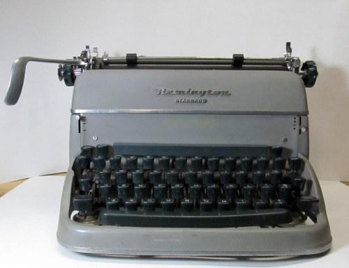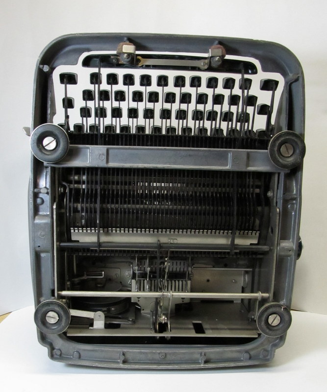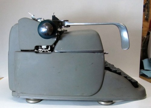 Super-Riter is back in one piece now and recovering well. It’s a marvelous bit of engineering, and it types with near perfection. The sole downside is the weight, 32 lbs. It’s so heavy that when you get typing, the machine will begin to sway even a solid table due to resonance and its mass. Placed on a heavy table, I imagine it would be heavenly. On a TV tray, extremely risky! Not for card tables this sucker.