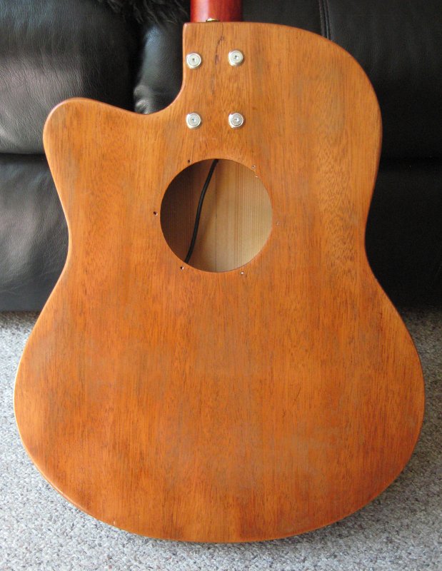 So, I got it all assembled and wonder of wonders, it sounds great without a hole in the top. Imagine my shock! Despite the thick soundboard and lack of hole, this thing is loud and sounds a lot like a carved archtop with the strong attack you want in jazz. The pickup is great too and deserves the reputation it has for not only jazz but most any type of electric guitar music you can name.
