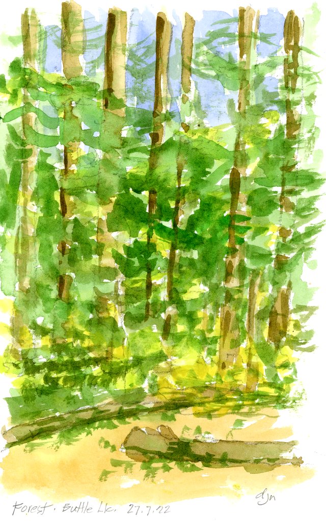 Today’s ride took me to a huge fenced off field on the edge of downtown that was once a heavily polluted industrial site. The gates were open so I ignored the No Trespassing signs and rode my bike to a good spot where I sketched an old power station and a working asphalt plant. While I was there, several cars arrived and the folks walked out into the empty field at my back. Later on while drinking an expensive coffee at a nearby sidewalk cafe, I met two gents I’d seen at the field and we had a brief chat, whereupon they informed me that the acreage in question was going to be developed in a few years, once the master plan was ready.