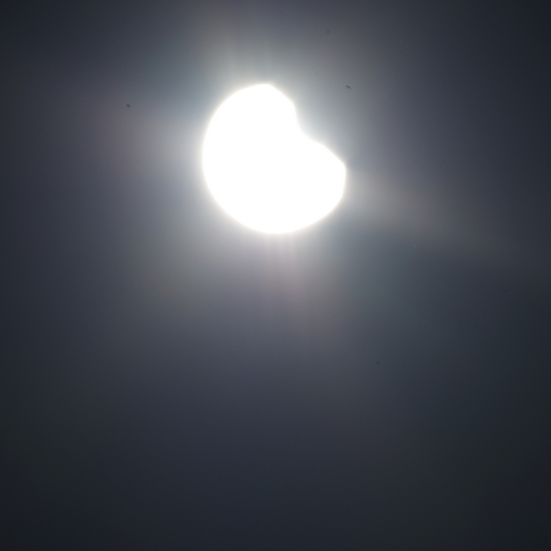 The results did not really do justice to the eclipse, however. I managed one pic by shading the camera lens with the sun goggles and snapping a picture directly.