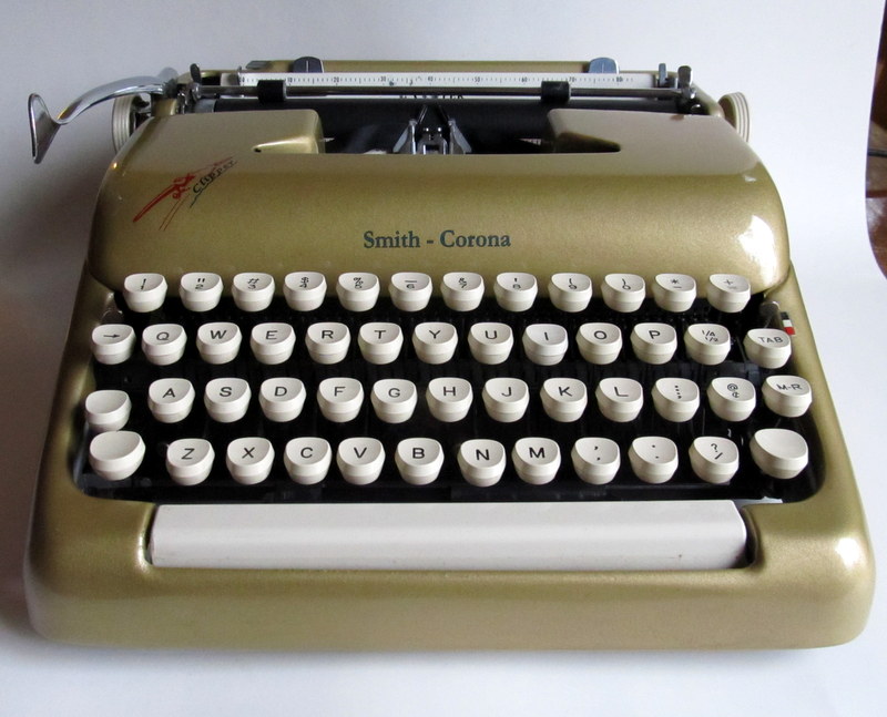 Super-Riter is back in one piece now and recovering well. It’s a marvelous bit of engineering, and it types with near perfection. The sole downside is the weight, 32 lbs. It’s so heavy that when you get typing, the machine will begin to sway even a solid table due to resonance and its mass. Placed on a heavy table, I imagine it would be heavenly. On a TV tray, extremely risky! Not for card tables this sucker.