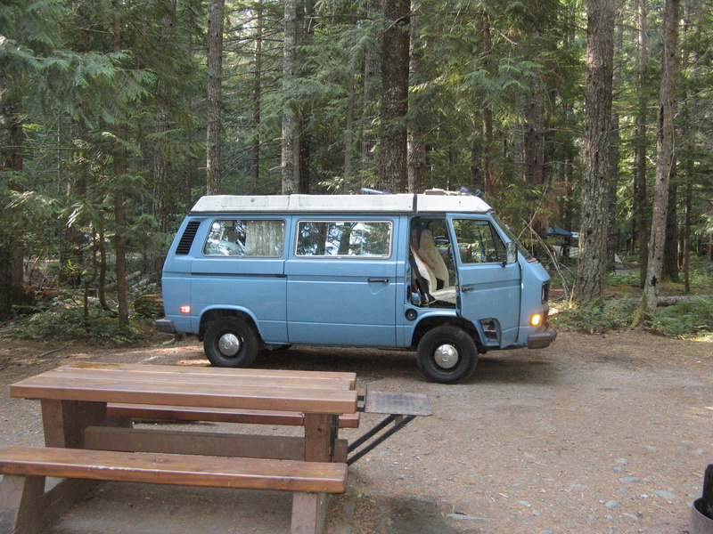 Next scheduled stop was to be the Olympic Hot Springs, up the Elwha River valley, but alas the road was closed for repairs. So we went to the Sol Duc Hot Springs instead. These are your tourist type hot baths, basically concrete tubs full of bored looking folks and always some Russians. (Russians – what’s the story?) Not that we mind them, we just prefer to hike two miles and bath privately naked in the wilderness (or at Harbin – see previous post). Warmed and relaxed to the point of narcolepsy, we had to return to the highway (US101) to camp, since the campground at Sol Duc was full – of course! But in this way we turned adversity to opportunity and discovered yet another gem in the way of Fairholme Campground on Lake Crescent.