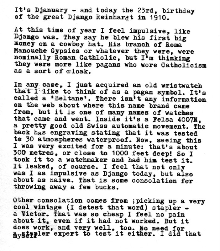 I left and part of me agreed with him, but I still thought he was a liar, because I know of several watch repair people in town, and he didn’t mention any of them, which confirmed my suspicion that he didn’t want me to repair a watch, but wanted to get his hands on one so he could fix it and sell it.