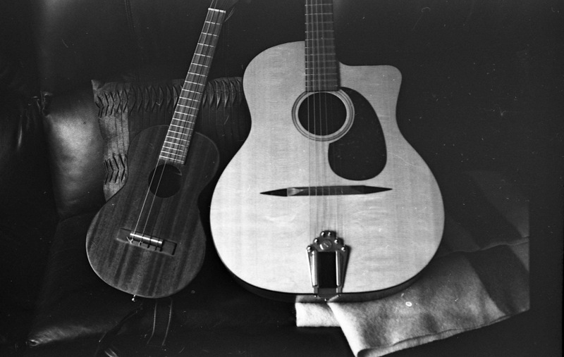 ukelele & guitar  – 2014 – The guitar is Selmer gypsy jazz style but with arched x-bracing