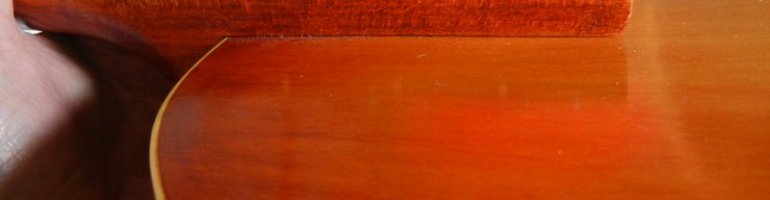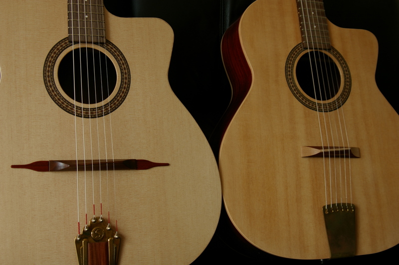 Favino style – cedar & mahogany – 67 cm scale – 2002. Favinos are slightly wider than Selmers, and hence a little bassier and louder