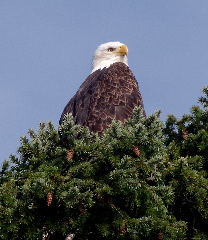 Last night I won $84 on my 6/49 loto ticket. So I purchased another one. I know that statistics prove that lucky streaks are random occurrences, but maybe I’m having randomly occurring luck. It certainly seems to be that way with the birds recently. I’ve seen three bald eagles in the past five days, another one just today around noon. It seems to have taken up residence in a local tall tree.