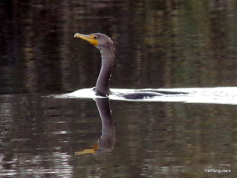 Today in the park, I saw some new wildlife at long last. I can’t fathom why the past month or so has seemed so utterly barren of birds out there. But today all seems suddenly better. There was a Great Blue Heron preening as I walked out onto the floating bridge. Then a Cormorant came along.